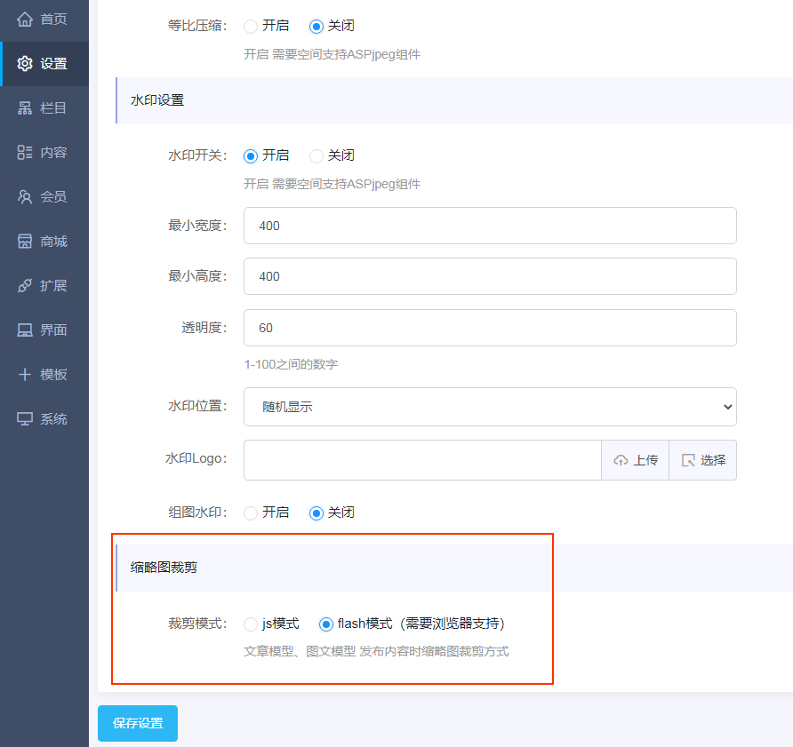 如何设置列表页缩略图裁剪功能